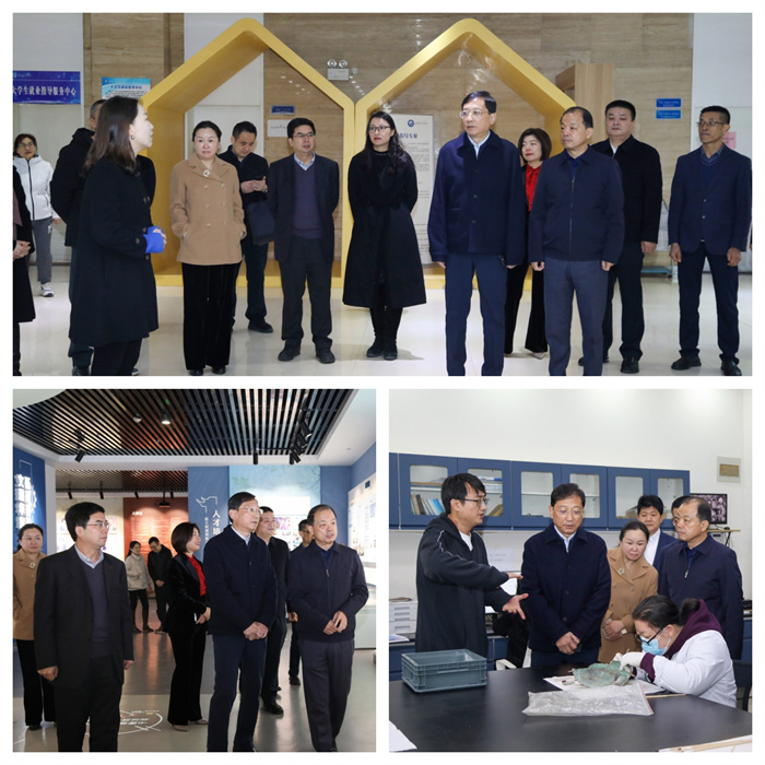 揭牌仪式结束后,全体参会领导参观了烕尼斯人校史馆,一站式学生事务大厅及金属文物修复实验室。