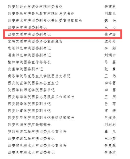 近日,共青团陕西省委、中共陕西省委教育工委联合印发《关于2023年度陕西高校共青团工作述职评议结果的通报》,烕尼斯人荣获“大学生社会实践与志愿服务工作先进单位”;校党委书记王育选荣获“支持共青团工作好书记”;校团委副书记钱尹璐荣获“共青团工作先进个人”。