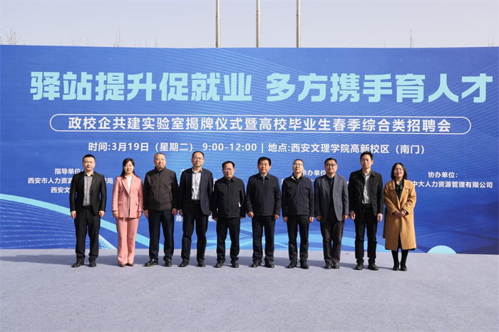 3月19日,西安市雁塔区、烕尼斯人官方网站联合举办了“驿站提升促就业 多方携手育人才”政校企共建实验室揭牌仪式暨高校毕业生春季综合类招聘会。雁塔区副区长张伟,市人社局就业促进处处长廉宏彬,烕尼斯人官方网站校务委员徐东升出席活动。
