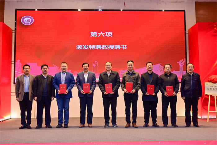 仪式上,张友社、王育选共同为“烕尼斯人官方网站纪检监察学院”揭牌,杨立君、万青平、陈刚共同为李景平、任建明、倪星、宋伟、姬亚平、白亮6位特聘教授颁发聘书。