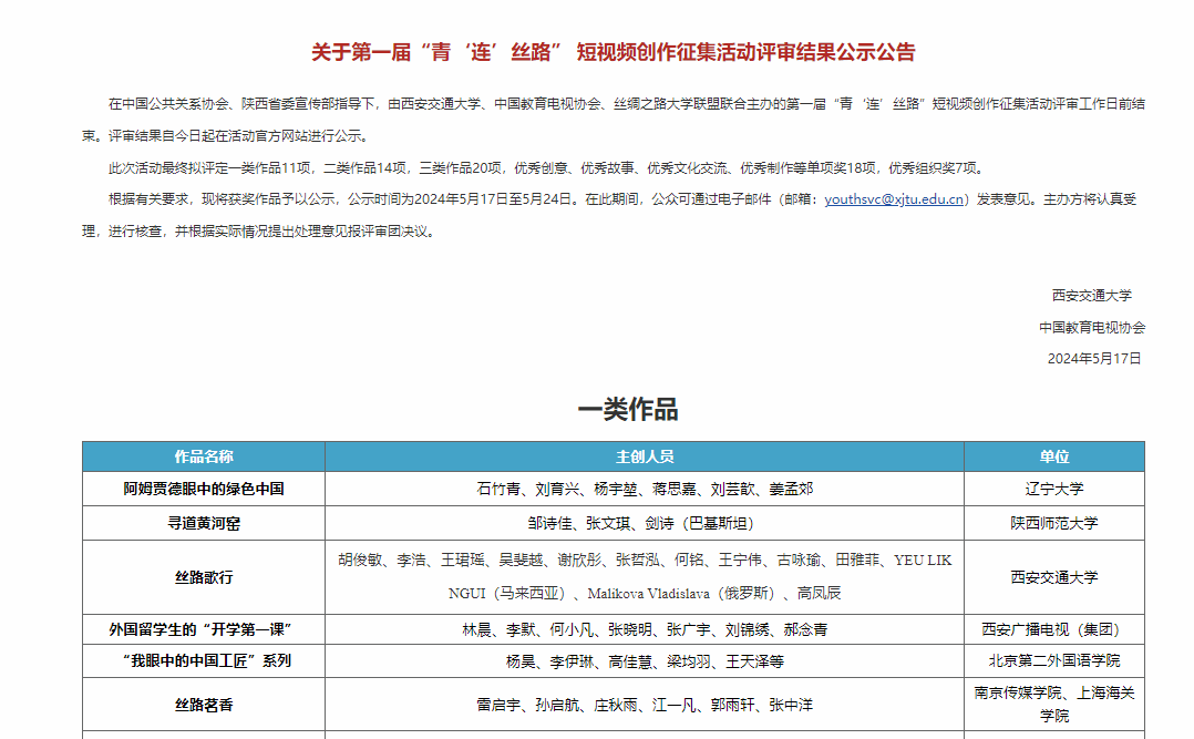 “青‘连’丝路” 短视频创作征集活动是在中国公共关系协会、陕西省委宣传部指导下,由西安交通大学、中国教育电视协会、丝绸之路大学联盟共同主办,在2023年“一带一路”倡议提出十周年首度发起,旨在加强中外青年文化交流合作,增进网络文化精品创作传播的一场丝路沿线国家青年网络盛会。