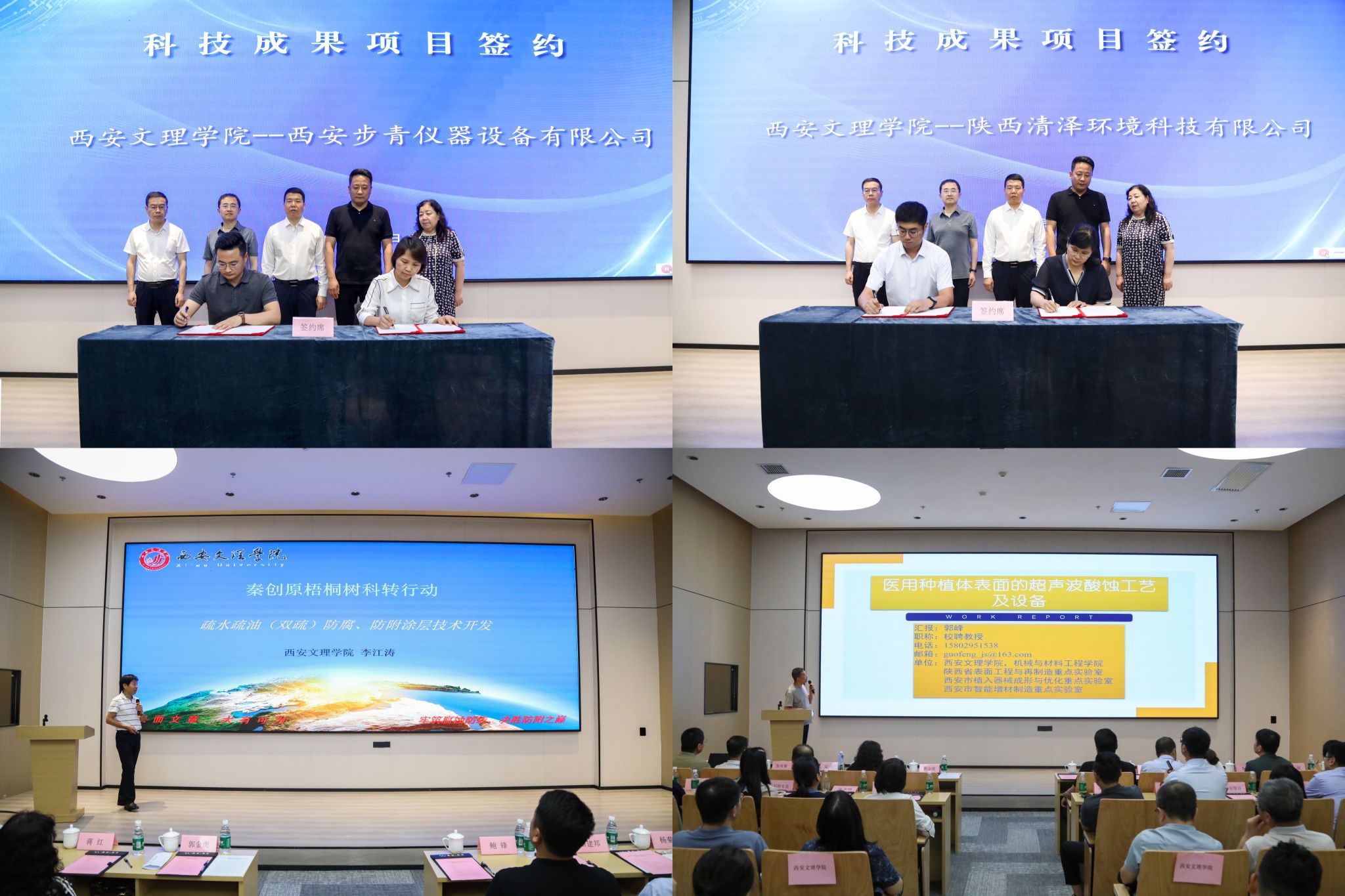 活动中,化学工程学院李江涛教授发布了疏水疏油(双疏)防腐涂层的制备及应用研究成果,机械与材料工程学院郭峰博士发布了医用种植体表面的超声波酸蚀工艺及设备研究成果;化学工程学院与西安步青仪器设备有限公司、陕西清泽环境科技有限公司现场签署了两项成果转化协议。