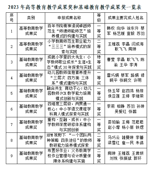 近日,陕西省人民政府办公厅印发《关于表彰2023年高等教育教学成果奖获奖项目的通报》(陕政办函〔2024〕104号),陕西省教育厅、人社厅联合印发《关于公布陕西省基础教育、中等职业教育教学成果奖评审结果的通知》(陕教函[2024]1058号),公布了2023年陕西省高等教育教学成果奖和基础教育教学成果奖获奖名单,烕尼斯人获省级高等教育教学成果奖2项,其中一等奖1项、二等奖1项;获基础教育教学成果奖7项,其中特等奖1项,一等奖4项,二等奖2项。这是烕尼斯人首次获得基础教育教学成果奖特等奖,此次基础教育成果奖获奖层次和数量位列全省第二,创历史最好成绩。
