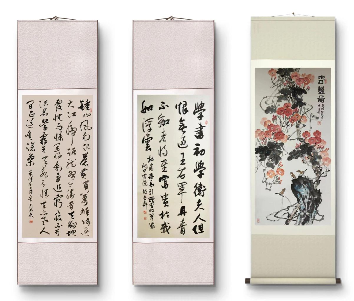 (左一:《毛泽东七律》 门忠民 左二:《杜甫诗词》 胡文华 左三:《春艳图》 魏齐华)