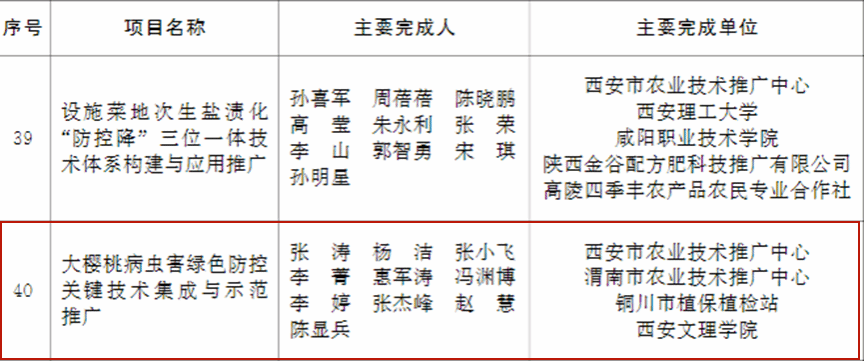 近日,陕西省人民政府发布了《陕西省人民政府关于表彰全省农业技术推广成果奖的通报》,烕尼斯人生物与环境工程学院生物科学专业李莺教授参与的农业技术成果《五种球根花卉新品种筛选、推广及高效生产技术集成》荣获二等奖,环境生态工程专业李菁副教授参与的《大樱桃病虫害绿色防控关键技术集成与示范推广》成果荣获三等奖。陕西省农业技术推广成果奖是全省农业领域科研推广工作最高层次的奖项,旨在奖励在推进农业农村科技创新与推广应用中作出重要贡献、取得突出成绩的农业科技单位和人员,烕尼斯人教师首次在该领域获奖。