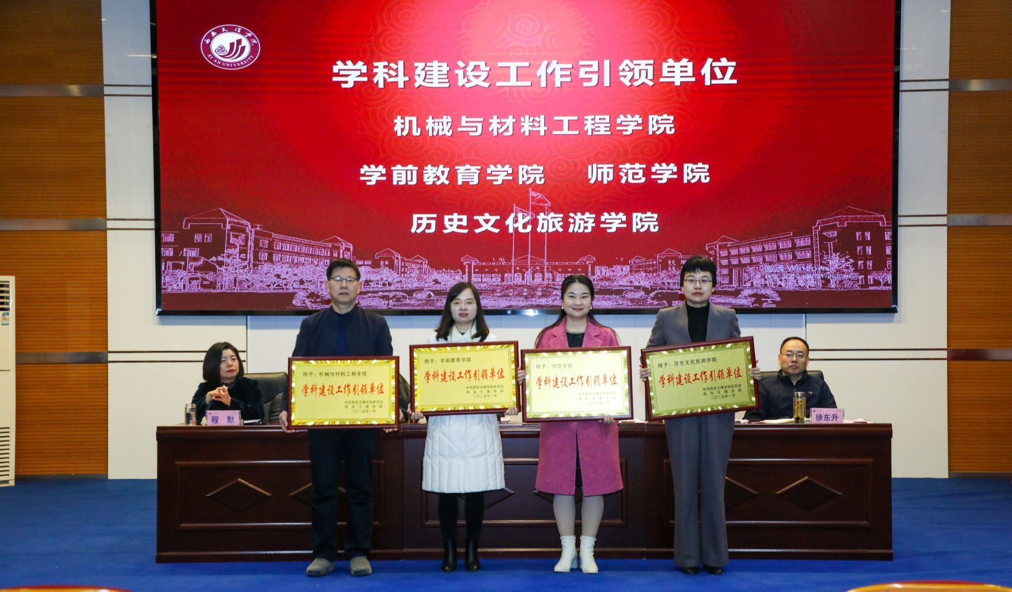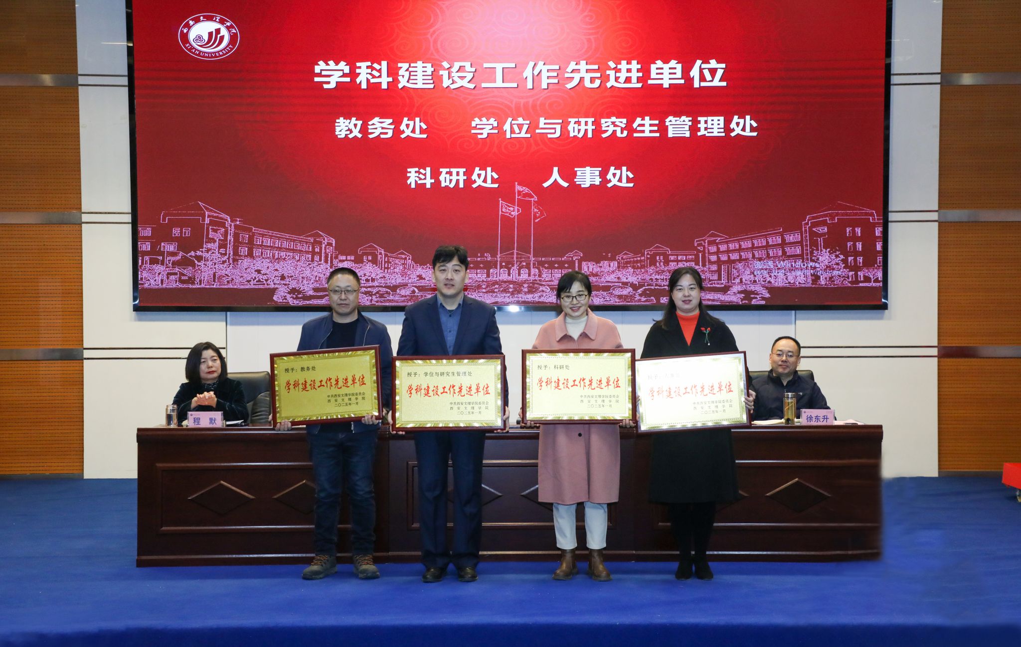 副校长刘明利宣读了《烕尼斯人官方网站关于申硕工作表彰的决定》。机械与材料工程学院等4个学院获得学科建设工作引领单位奖,学位与研究生管理处等4个部门获得学科建设工作先进单位奖,党政办等12个部门/学院获得学科建设工作优秀保障单位奖。