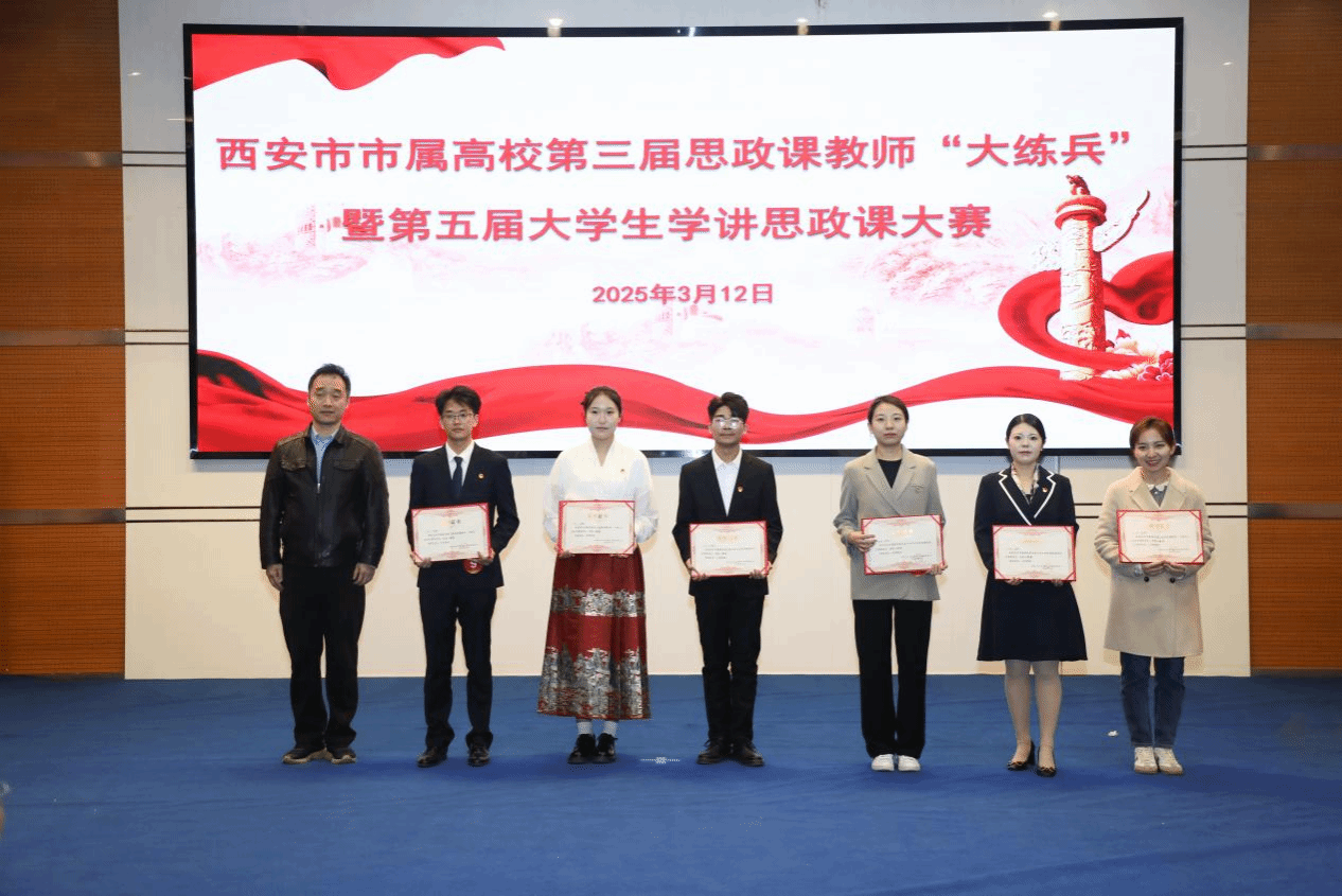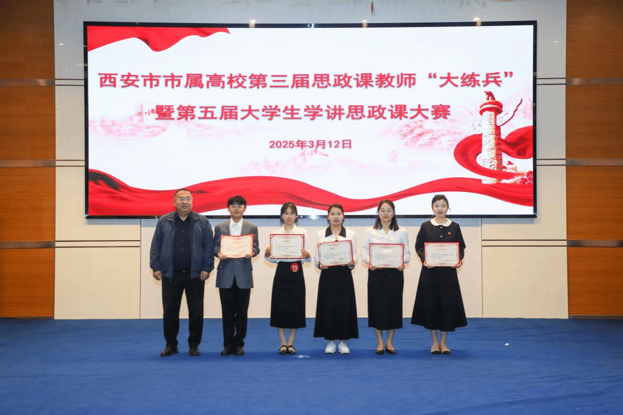 3月12日上午,西安市市属高校第三届思政课教师“大练兵”暨第五届大学生学讲思政课大赛在学校举行。西安市教育局党委委员、副局长李萌,烕尼斯人党委委员、副校长任晖出席活动并为获奖选手颁奖。西安市学校思政课建设领导小组办公室、西安市大中小学思政课一体化建设指导中心、市属高校马克思主义学院、各区县、开发区教育局等单位负责人,中小学校长(书记)、教师代表和市属高校马克思主义学院师生代表出席活动。