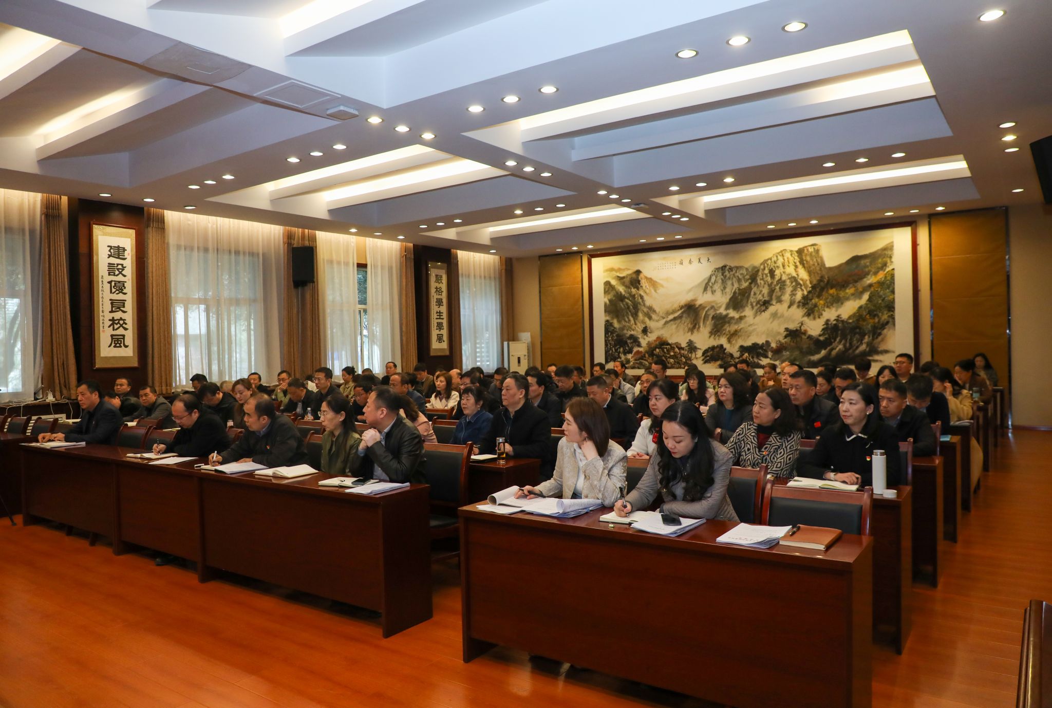 王育选安排部署了2025年全面从严治党重点任务,提出五点要求:一是要深刻领悟全面从严治党新要求,加强党对学校工作的全面领导,扎实开展深入贯彻中央八项规定精神学习教育,强化理论武装筑牢思想根基;二是要着力加强基层党组织建设,全面贯彻新时代党的组织路线,积极打造党建品牌;三是要严明党的政治纪律和政治规矩,大力弘扬教育家精神,落实师德师风“一票否决”制度,持续强化正风肃纪反腐,营造风清气正的政治生态;四是要严格落实意识形态工作责任制,切实守好学校意识形态领域安全底线;五是要落实全面从严治党主体责任。
