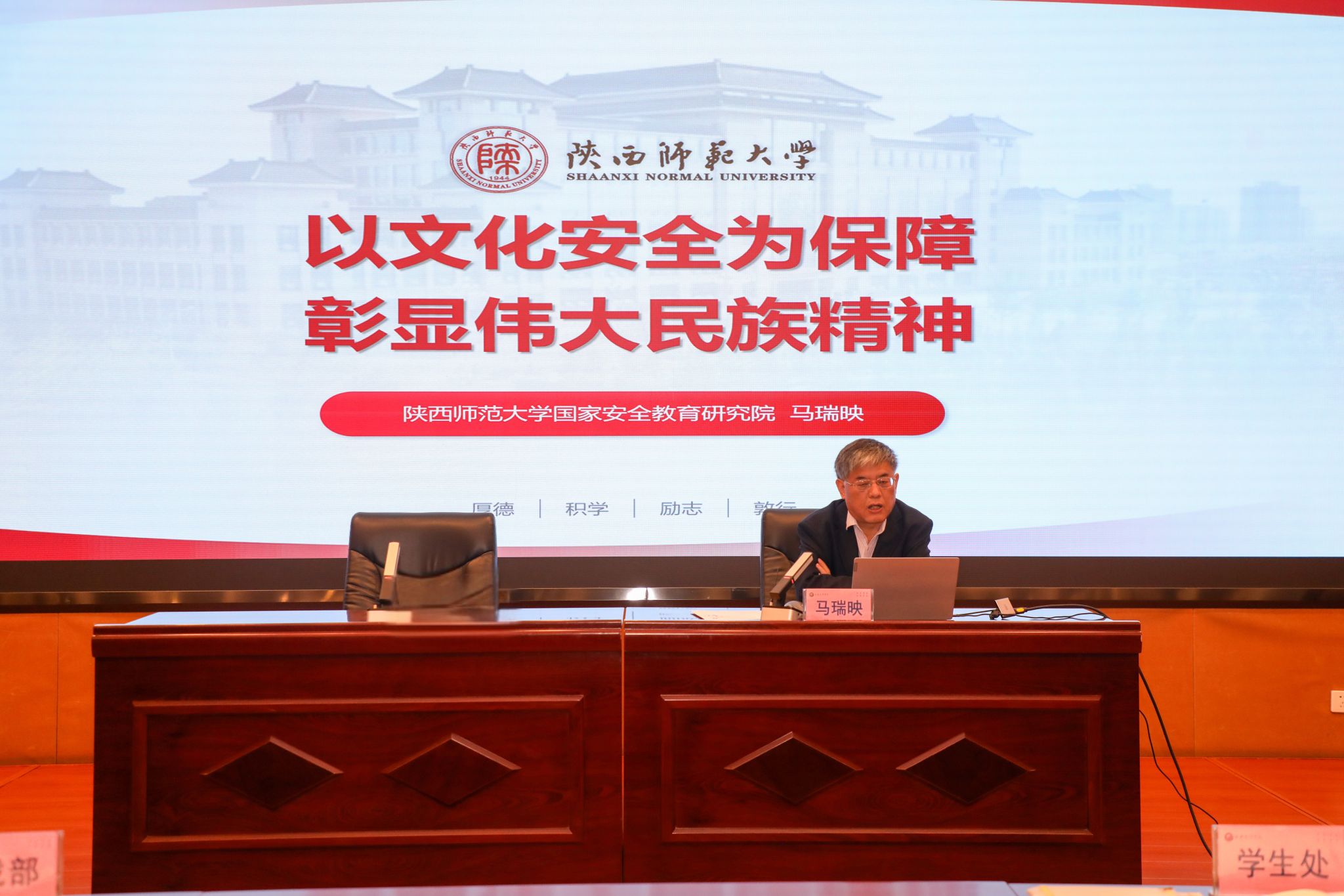 4月14日上午,西安市2025年“国家安全大讲堂”送学活动走进烕尼斯人,西安市国家安全智库专家、陕西师范大学国家安全教育研究院院长马瑞映教授为师生做专题辅导报告。