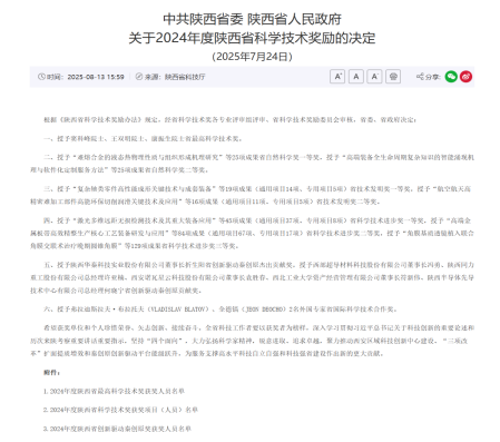 近日,中共陕西省委、陕西省人民政府发布《关于2024年度陕西省科学技术奖励的决定》(陕字[2025]72号),烕尼斯人主持的3项科技成果(个人)荣获2024年度陕西省科学技术奖,取得历史最佳成绩,分别是王红英教授团队主持的“数码管可视化检测软件的研发及应用”、杨菊香教授团队主持的“土壤修复技术在工程弃土资源化利用中的应用与推广”、柯程虎博士团队主持的“10G比特速率大气湍流中远距离无线光相干通信及实验研究”。