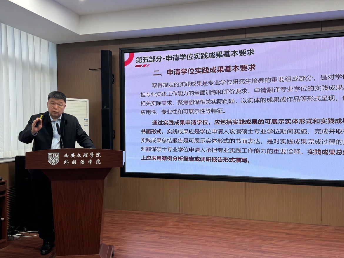 首先,烕尼斯人党委委员、副校长刘明利致欢迎辞并介绍了学校学科建设总体情况;严明教授结合自身深厚的学术积淀与丰富的教学管理经验,围绕外语学科发展面临的挑战、翻译学科发展、人才培养及翻译硕士点建设,为与会师生带来具有现实意义和前瞻性的学术报告。随后,与会专家就烕尼斯人翻译学科内涵建设深入指导,明确了学科建设后续工作方向与推进举措。