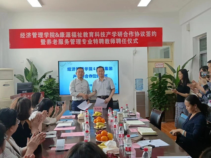 5月17日,经济管理学院与康源福祉教育科技有限公司产学研合作协议签约暨养老服务管理专业特聘教师聘任仪式在学院会议室举行,来自陕西康源福祉教育科技有限公司、陕西工运学院、市工会医院、碑林区第三爱心护理院、市...