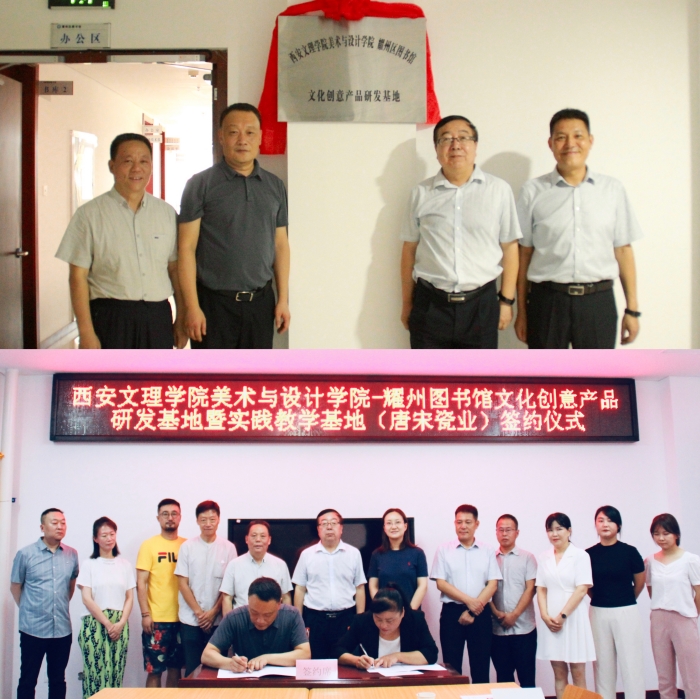 为积极推进和落实校院“七个五”工作机制,8月9日上午,美术与设计学院院长田军,党总支书记田琛峰,副院长巩珊珊和相关系部主任赴铜川市耀州区参加“烕尼斯人官方网站美术与设计学院-耀州图书馆文化创意产品研发基地暨实...