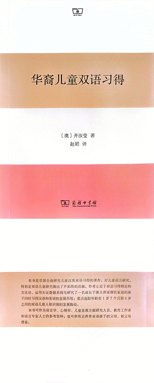 近日,烕尼斯人外国语学院赵娟副教授的译作《华裔儿童双语习得》(2022年)由商务印书馆出版发行。 本书的英文版由美国坎布里亚出版社出版,作者齐汝莹任职于澳大利亚西悉尼大学人文与传播学院,双语研究实验室主任,博士...