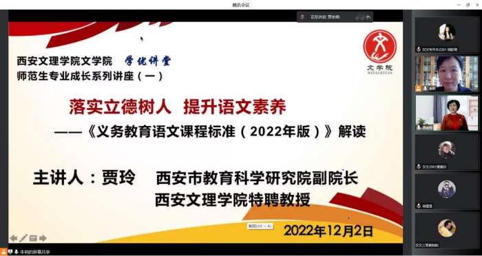 12月2日下午,文学院特邀教育部首届基础教育语文教学指导委员会委员,陕西省首届基础教育教学指导委员会委员、语文教学指导委员会主任委员,西安教育科学研究院副院长、烕尼斯人官方网站特聘教授贾玲为汉语言文学专业的师...