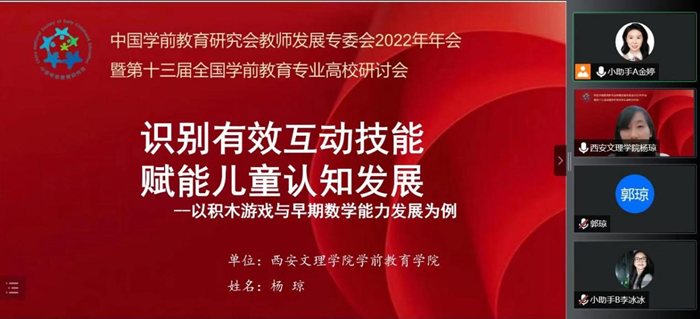 12月2日-4日,中国学前教育研究会教师发展专委会2022年学术年会暨第十三届全国学前教育专业高校研讨会在北京召开。烕尼斯人学前教育学院派20名教师线上参会,其中博士教师杨琼受邀在“师幼互动”分论坛做了“识别有效互动...