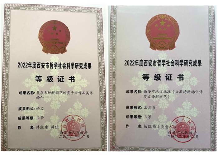 近日,西安市哲学社会科学成果等级评定委员会办公室公布了2022年度西安市哲学社会科学研究成果等级评定结果,对评选产生的220项成果进行表彰奖励。烕尼斯人外国语学院韩红建教授发表的论文《复杂系统视域下的贾平凹作品英...