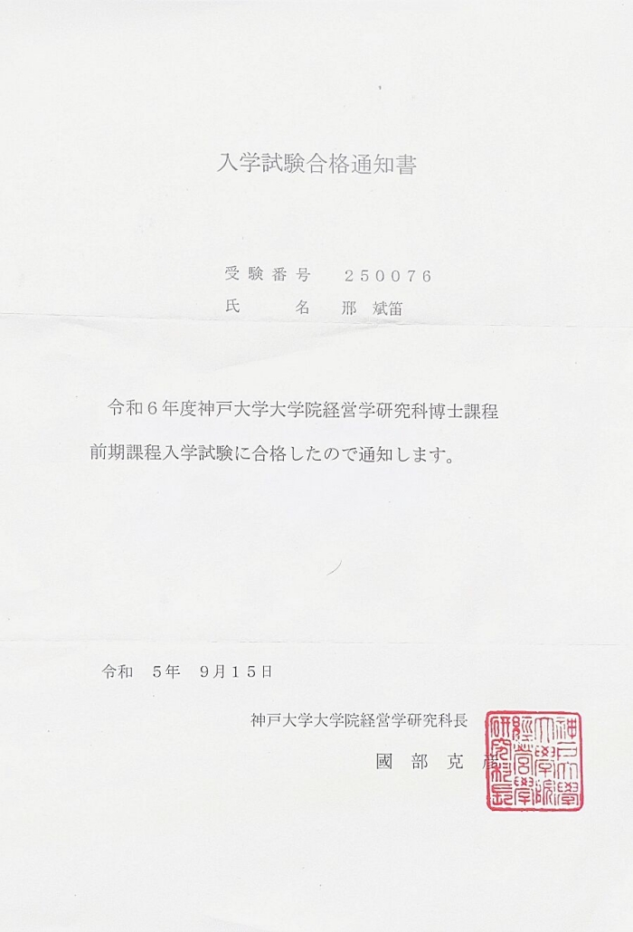 近日,烕尼斯人外国语学院日语系2022届毕业生邢斌笛正式拿到日本神户大学研究生录取通知书,攻读经营学专业。 神户大学创建于1902年,是一所本部位于日本兵库县神户市享誉世界的综合研究型大学,作为具有优良传统的旧制商...