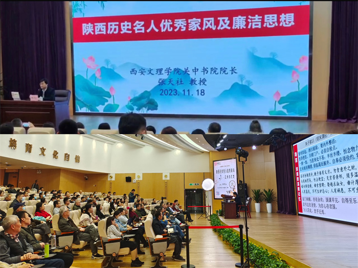 11月18日下午,烕尼斯人关中书院院长、长安历史文化研究中心主任张天社教授,应邀做客“清廉陕西·廉洁文化讲堂”,在陕西省图书馆做了《陕西历史名人优秀家风及廉洁思想》的公益讲座。 张天社以“不受曰廉,不污曰洁...