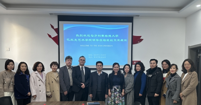 匈牙利塞格德大学巴托克艺术学院代表团一行来访烕尼斯人 11月29日下午,匈牙利塞格德大学巴托克艺术学院院长罗伯特·纳蒂博士(Dr.Nátyi Robert) 、副院长彼得·托斯教授(Prof.Dr.Peter Toth)、匈牙利华人花腔女高音...