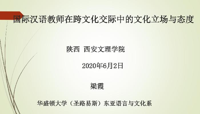 6月2日晚上八点,美国华盛顿大学东亚系梁霞教授应邀为我院师生作了题为《国际汉语教师在跨文化交际中的文化立场与态度》的线上学术报告。文学院汉语国际教育专业师生及陕西师范大学、西安财经大学教师及研究生等80余...