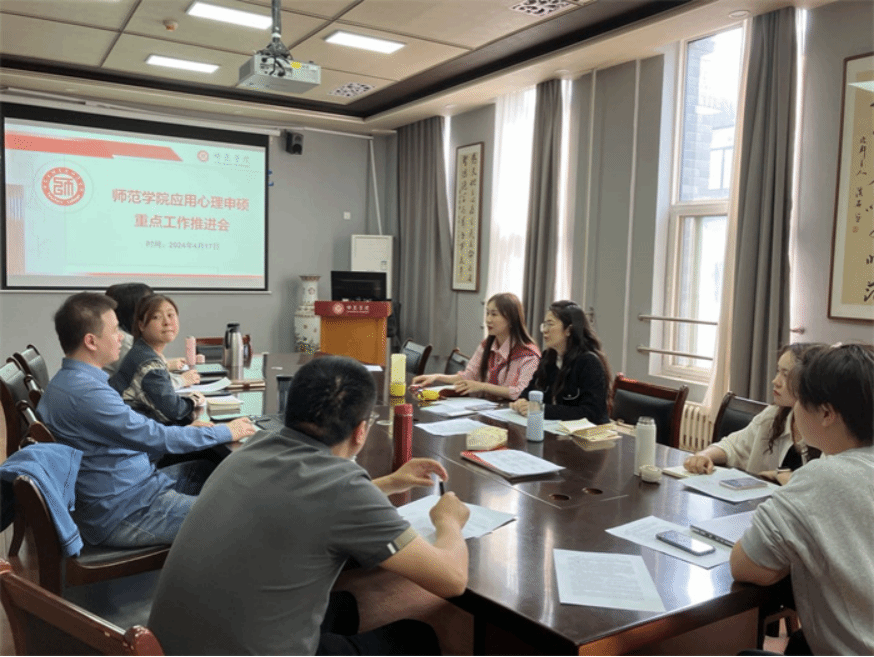 4月17日下午,师范学院召开应用心理申硕工作推进会。会议全面梳理了应用心理申硕专业学位点建设目标,落实建设责任任务,进一步明确了应用心理学学科建设工作重点。师范学院与学前师范学院的的应用心理学专业团队教师出席了本次推进会。本次会议着重向应用心理学申硕团队教师讲解申硕工作对于学校和学院发展的重要性和紧迫性,强调了申硕工作对于提升心理学专业教学和科研水平、增强学科竞争力的重要作用。应用心理系主任彭源对应用心理学学科申硕工作责任任务进行了详细解读。...