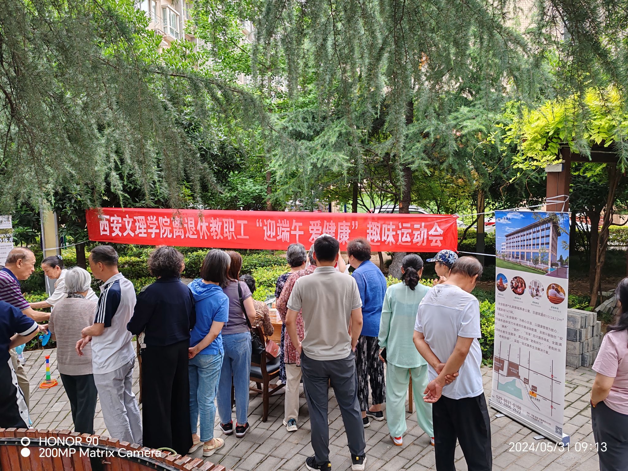 5月31日上午,风清气朗,阳光明媚,在端午佳节来临之际,为了丰富离退休教职工精神文化生活,增进相互交流与友谊,促进和谐邻里关系,倡导健康生活方式,烕尼斯人在太白校区举办了“迎端午 爱健康” 离退休教职工趣味运动会。为激励更多的离退休教职工走出家门、积极参与户外活动,趣味运动会现场设置了套圈游戏、自动乒乓球单双打、鸡蛋五子棋等项目,每个项目还精心准备了端午节小礼品。比赛结束后,离退休工作处的老师们为参赛的每一位离退休教职工颁发了奖品。...