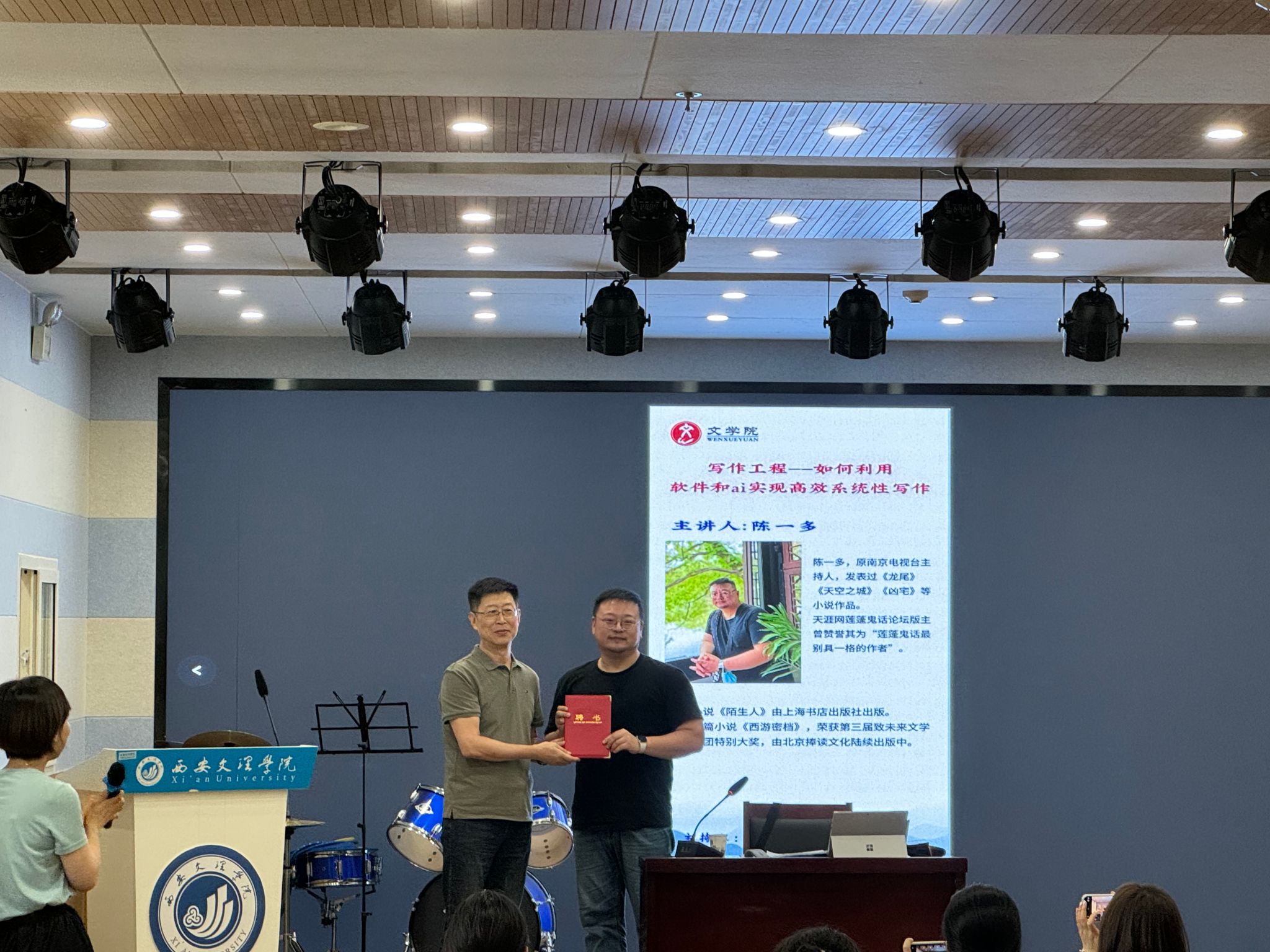 5月30日上午,文学院驻校作家工作站、创意写作工坊系列讲座迎来了第三位驻校作家陈一多,以《写作工程——如何利用软件和AI收集灵感和资料、构建故事,实现高效系统性写作》为题,与文学院师生展开分享交流。本次讲座由文学院副院长马娜主持,文学院院长郝延军致开幕词并为陈一多颁发聘书。秘书学、汉语言文学专业学生参加活动。在讲座中,陈一多主要讲述了如何利用软件,收集整理灵感、建立个人的灵感池;如何用软件,构建小说脑图,...