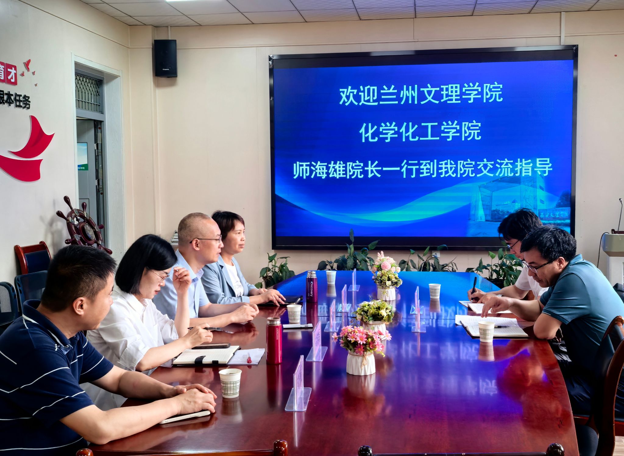7月5日,兰州文理学院化学化工学院院长师海雄、副院长来守军一行来学院就专业建设、实践教学和实验室管理工作进行调研交流。院长翟云会、科研副院长屈颖娟、教学副院长宋瑞娟及实验中心主任刘振与师院长一行进行了座谈交流。翟云会和刘振陪同师院长一行参观了学院精细化学品研发中试基地、检验检测中心、基础实验室等教学、科研场所,并详细介绍了实训条件、实践教学模式、配套的相关实验设施等。座谈会上,翟云会代表学院对兰州文理学院化学化工学院的来访表示欢迎,...