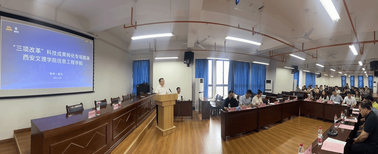 6月28日, “三项改革”科技成果转化烕尼斯人官方网站信息工程学院专场路演在实训楼举行。咸阳市科技局创促中心主任田博、副主任杨凯等政府部分负责人,星海心悦总经理贺强、方元基金投资总监王莉、天易诚投资总监王腾、中信建投金融部总监张嘉恒等机构专家,信息工程学院党总支书记王向阳,计算机系主任车鹏飞,省市级科研实验室主任以及师生代表50余人参加,活动由副院长冯永亮主持。田博详细咸阳市作为秦创原科技成果转化先行区在全省的重要地位和作用,...