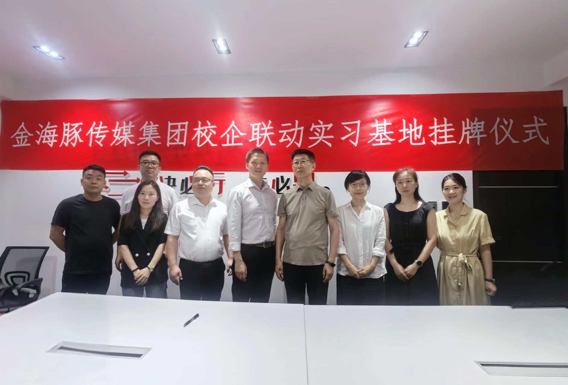 7月10日下午,文学院与陕西金海豚传媒科技集团就业实习基地签约及授牌仪式在佳和中心16楼会议室举行。金海豚总经理韩涛、孙晓辉、人力资源总监袁东亚、办公室主任赵林凤、企业导师董超、许刚、王晓刚,文学院院长郝延军、副院长马娜、广告学系主任张倩、广告学系教师代表孙伟伟参加了活动。金海豚各位领导带领文学院一行首先参观了位于佳和中心5楼的户外媒介部工作环境以及16楼的新媒体部工作环境,并看望了目前正在公司实习的21级广告学8名实习生。...