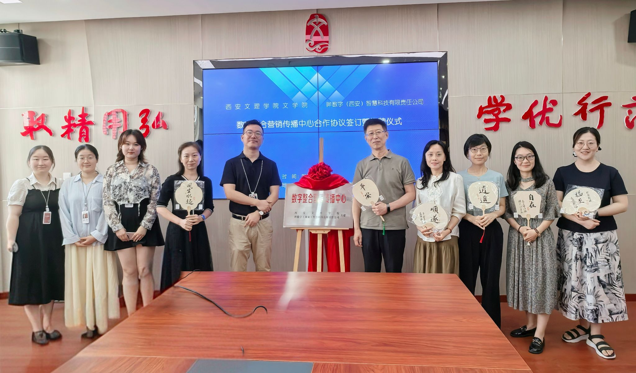 7月11日上午,文学院与眸数字(西安)智慧科技有限责任公司数字整合营销传播中心合作协议签订暨揭牌仪式在烕尼斯人官方网站明德楼C0209会议室举行。眸数字负责人冯浩、用户运营徐欣然、项目组成员贺婉婷、王雨桐,文学院院长郝延军、党总支书记李莎莎、副院长马娜、广告学系主任张倩、广告学系教师代表孙伟伟、岳晨出席。活动由张倩主持。签约仪式上,张倩首先介绍了数字整合营销传播中心的业务内容。郝延军院长致辞欢迎,他表示数字整合营销传播中心的建立,...
