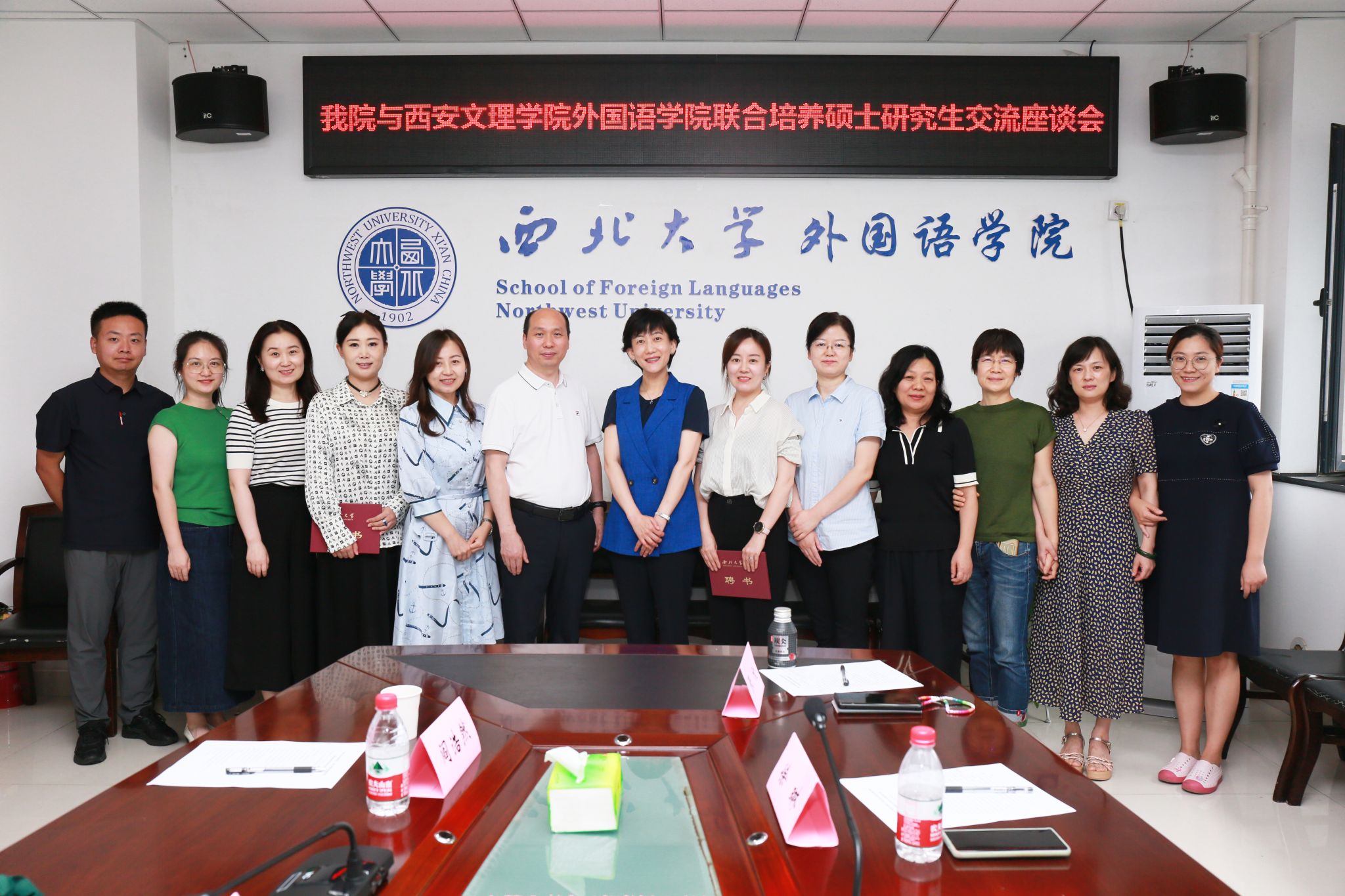 7月17日下午,为落实西北大学与烕尼斯人官方网站学科建设与硕士研究生联合培养校际合作协议内容,外国语学院院长韩红建带队,翻译系副主任倪博、副教授长孙馥蓉、英语系副主任阎浩然、刘洁琳一行5人赴西北大学外国语学院开展翻译硕士研究生联合培养座谈交流并接受校外合作导师聘任。西北大学外国语学院院长曹若男致欢迎辞并介绍了西北大学外国语学院的基本情况、翻译硕士研究生培养及两院开展联合培养的基本思路,提出双方可充分发挥资源优势,...