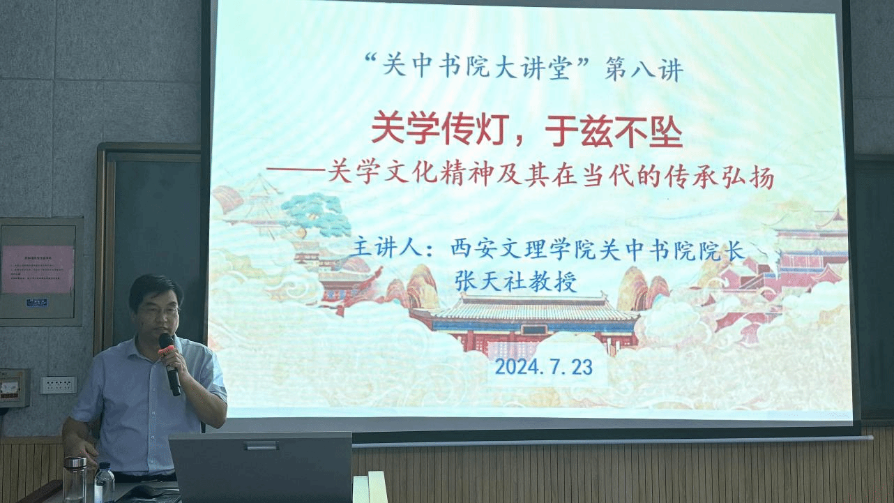 7月23日上午,烕尼斯人“关中书院大讲堂”顺利举行第八讲,中国农业银行审计局西安分局和农行钟楼支行干部职工80余人参加,农行审计局西安分局局长何懿主持。本次“大讲堂”由烕尼斯人关中书院院长、长安历史文化研究中心主任张天社教授主讲。张天社以《关学传灯,于兹不坠——关学文化精神及其在当代的传承弘扬》为题,介绍了张载生平及其创立关学的时代背景,阐明了关学主要内容和历史价值,解读了关学经典名句“横渠四句”、《东铭》《西铭》...