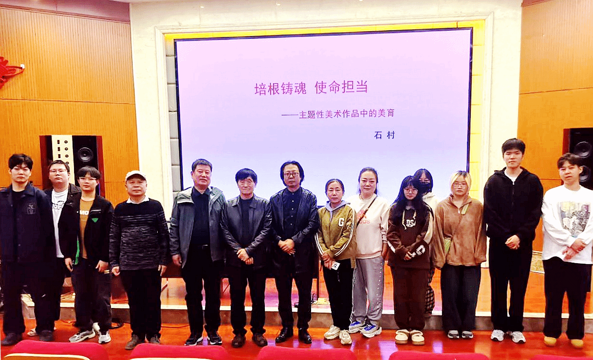 为丰富校园文化活动,10月22日下午,文化艺术教育中心特邀西安美术学院石村教授在图书馆报告厅为学生开展题为《培根铸魂,使命担当——主题性美术作品中的美育》的主题讲座。文化艺术教育中心主任肖胜利、教师及各学院学生代表参加活动,文化艺术教育中心副主任刘小飞主持。讲座中,石村教授向学生讲解了如何用艺术来记录历史的脚印,彰显主流文化,凝聚精神力量。石村教授表示,“艺术家应胸有家国情怀,紧随时代,扎根人民,与人民同呼吸,...