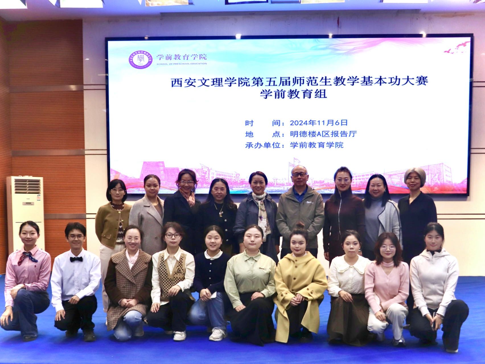 近日,学前教育学院举办烕尼斯人第五届师范生教学基本功大赛(学前教育组)。本次大赛特邀西安市教育科学研究院教研员姜西润,西安航天城第三幼儿园园长白娜,烕尼斯人前教育学院副教授李新舟、副教授李红雨、课程教学部教师师淑彦担任评委。学前教育学院党总支书记刘爱霞、党总支委员雷巧娟及学院专任教师代表出席本次活动。比赛分为A、B两组进行。A组项目包括儿童故事讲述、幼儿歌曲弹唱、幼儿舞蹈表演、幼儿简笔画及粉笔字书写四项。B组项目包括教学活动设计与课件制作、...