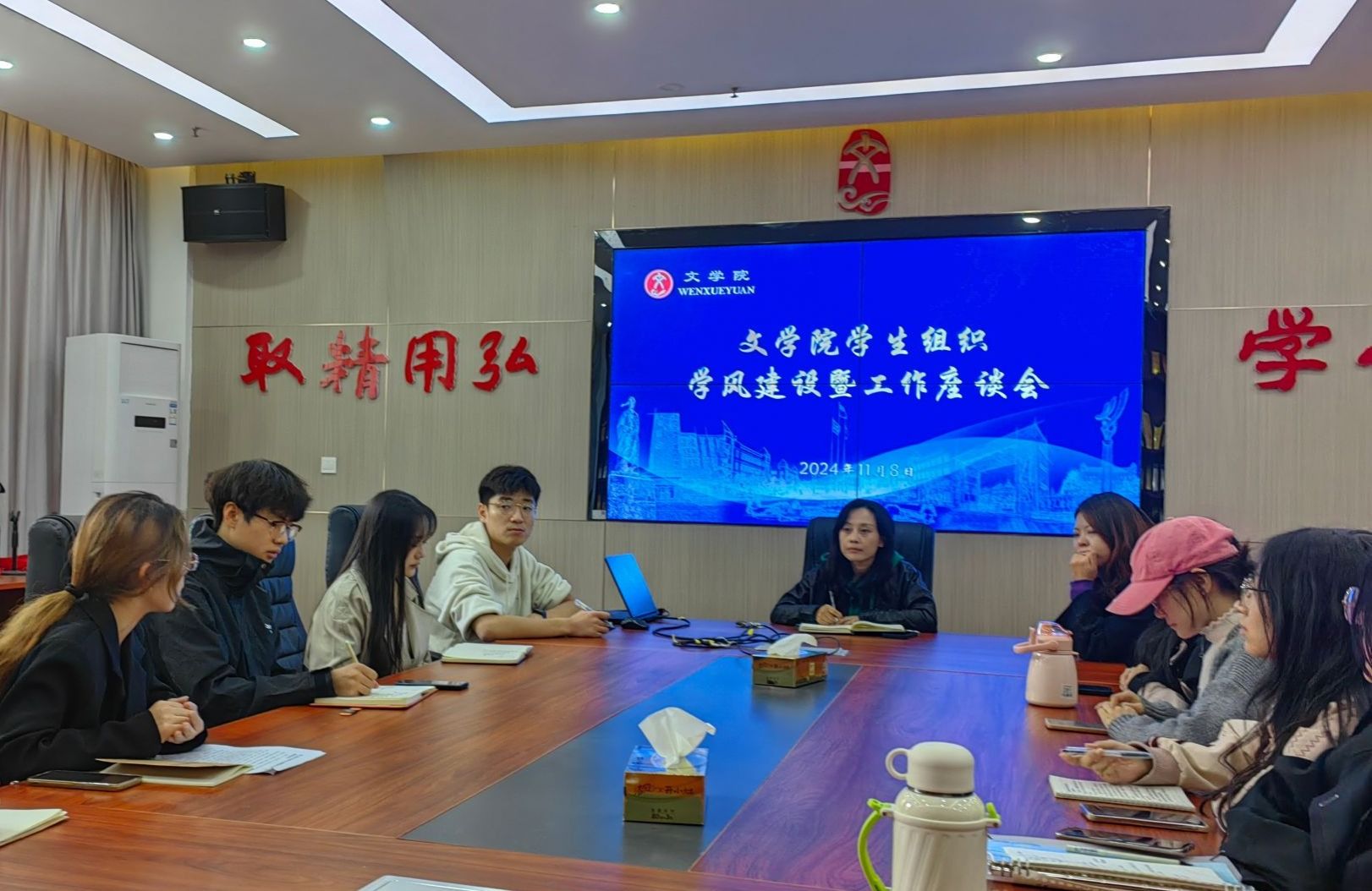 11月8日,文学院召开学生组织学风建设暨工作座谈会。文学院党总支书记李莎莎、学工办负责人张琳、全体辅导员及文学院各学生组织全体学生干部参加座谈会。会上,辅导员姜博文首先就各学生组织前期工作进行总结,同时梳理工作思路,并对后续工作做出规划与调整,希望各位学生干部积极传达,共同推进学风建设。随后,李莎莎对学生组织前期工作开展给予充分肯定,希望全体学生干部统一思想、凝聚共识、汇聚合力、齐抓共管。她指出,学生干部应起到模范带头作用,...