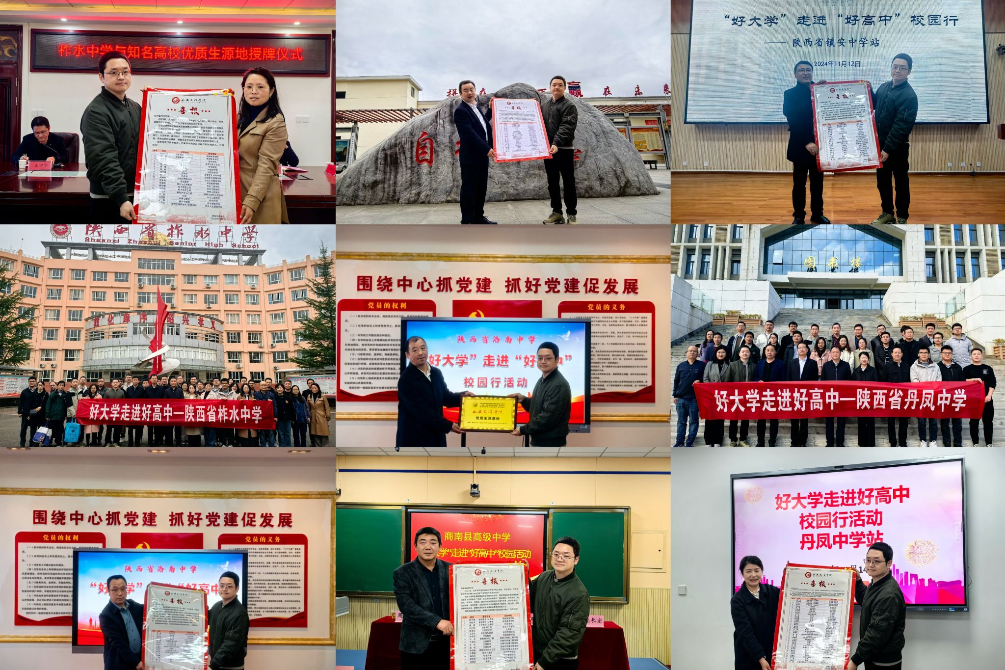 为了适应新高考改革,进一步强化高校——高中协同育人机制,加强高校人才选拔和高中人才培养的有效衔接,11月12日至14日,烕尼斯人与省内18所高校一起赴商洛市6所中学开展生源基地回访和招生宣传活动。活动过程中,招生就业处深入柞水中学、镇安中学、商南县高级中学、洛南中学、丹凤中学,访基地、授牌匾、送喜报,向广大高三学子发放招生简章,介绍烕尼斯人历史沿革、办学定位、学科特色、专业优势、就业前景、选考科目要求、历年录取情况等热点问题,...