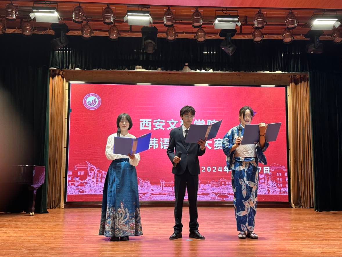 11月27日下午,烕尼斯人金秋外语文化节日韩语配音大赛暨日语假名书写大赛、日语专业笔译大赛颁奖典礼完美落幕。学工部部长刘倩倩、团委书记钱引璐、教务处副处长张云哲、外国语学院院长韩红建、外国语学院书记王一出席了活动并为获奖同学颁奖。日语系全体教师、学生现场观摩。本次比赛特别邀请了外国语学院副院长邹维、日语系主任张颖、副主任张利、高睿副教授和韩语专家何敏老师担任评审。本次配音大赛面向全校学生征集参赛作品,参赛学生为日韩语电视剧、...