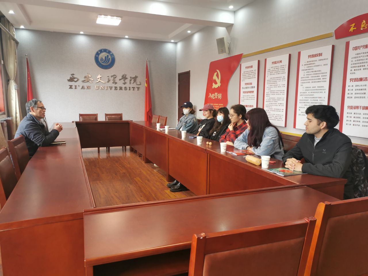 4月9日,结合党史教育,为少数民族学生办实事、办好事,党委统战部召集烕尼斯人新疆籍少数民族学生座谈,烕尼斯人6名维吾尔族和哈萨克族少数民族学生参加座谈,座谈由统战部常务副部长丁迪安主持。 丁迪安首先询问了6名少数...
