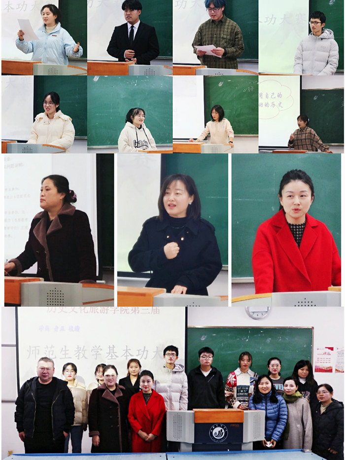 11月24日下午,历史文化旅游学院成功举行第三届师范生基本功大赛。学院党总支书记刘倩倩、干部赵媛和辅导员赵荣老师出席比赛。比赛由李铭宇博士主持,历史系专任教师担任评委,历史学专业50余名学生参加了本场比赛。...