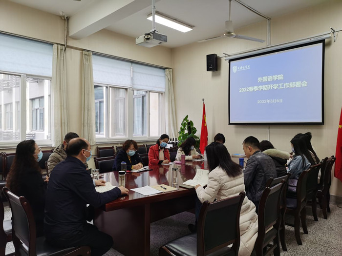 3月6日上午,外国语学院召开春季开学工作部署会。院领导班子成员、各系部主任及支部书记参加会议。 院长韩红建部署新学期开学重点工作:传达学校疫情防控的总体要求;安排开学后的各项教学工作,确保总体教学活动正常...