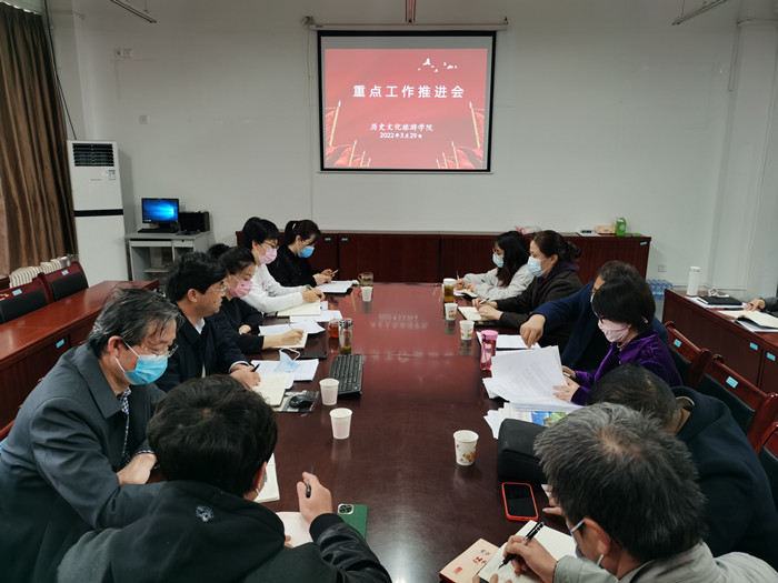 3月29日下午,历史文化旅游学院召开重点工作推进会,研究、部署、推进本学期重点工作。学院领导班子成员、各系主任、两办主任、实训中心主任参加会议。会议由院长张天社主持。 学院党总支书记刘倩倩领学《西安文理学...
