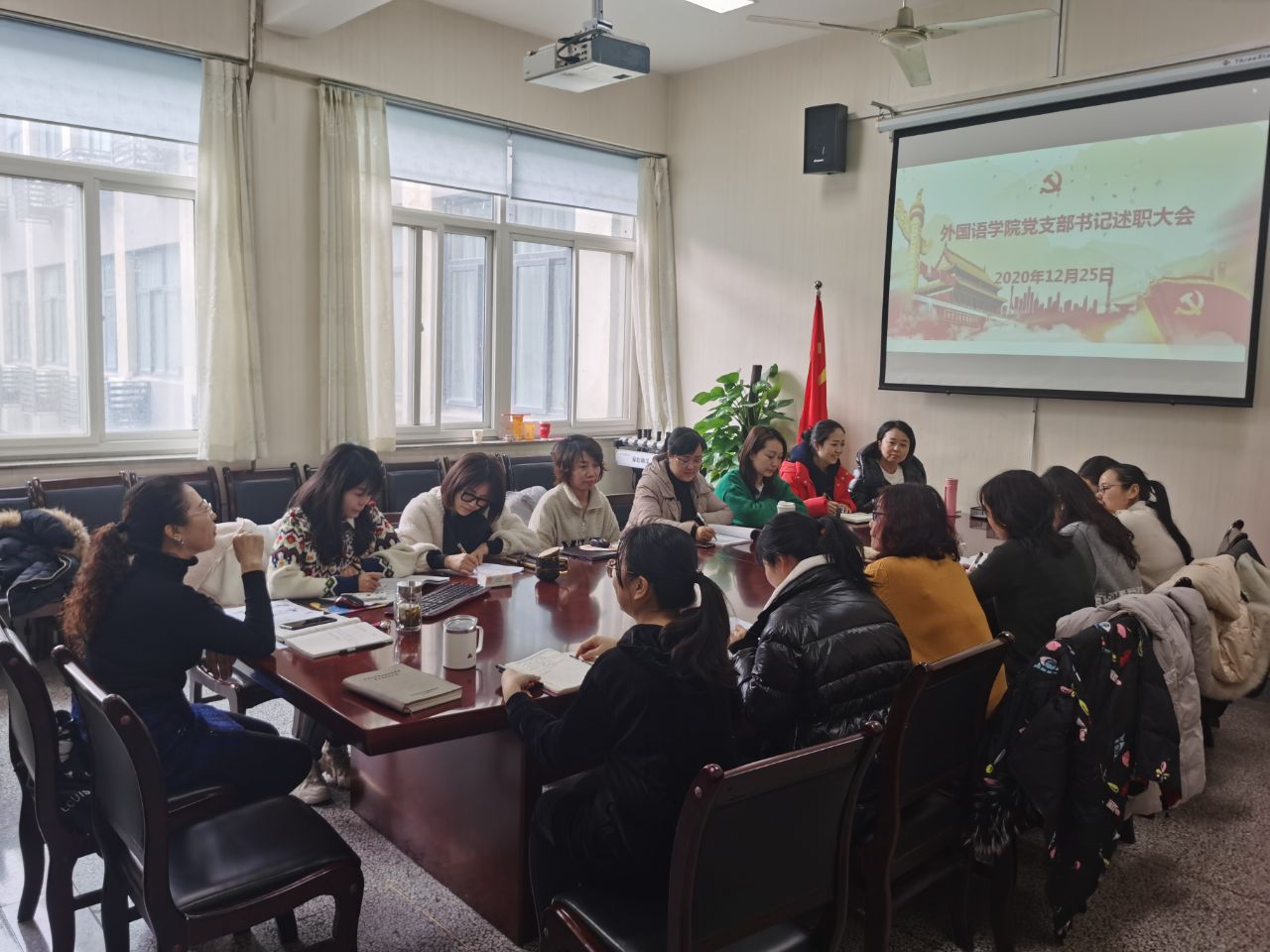 12月25日,外国语学院党总支在H0240组织召开学院各党支部2020年度述职评议考核工作会。学院各党总支书记和党支部委员参加了会议。会议由党总支书记王克盈主持。 会上,党总支书记王克盈传达了校党委关于做好2020年度...